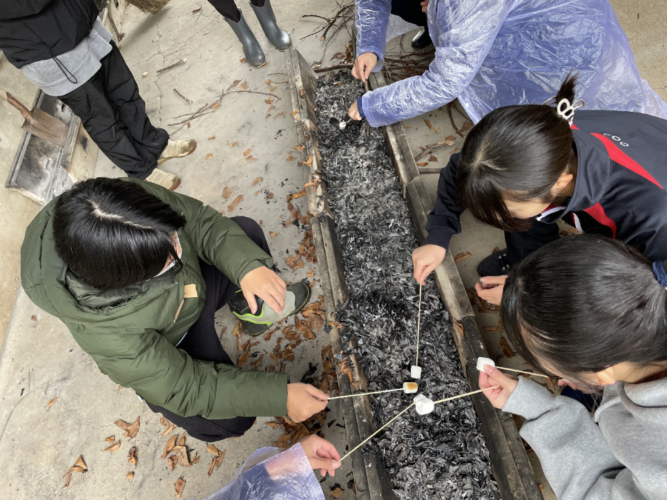 当日は雨の中、寒かったのですが落ち葉で「焼き芋」「焼きマシュマロ」をして、温まりながら活動しました。