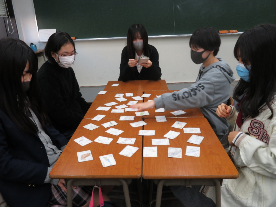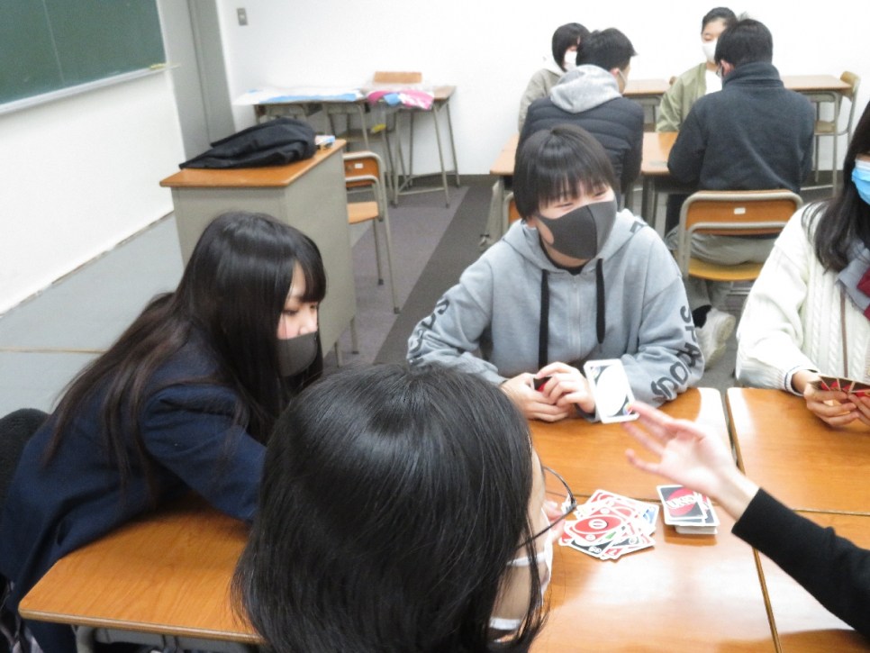 今回は、中学生が持参してくれたオリジナルかるたとUNO、神経衰弱を行いました。