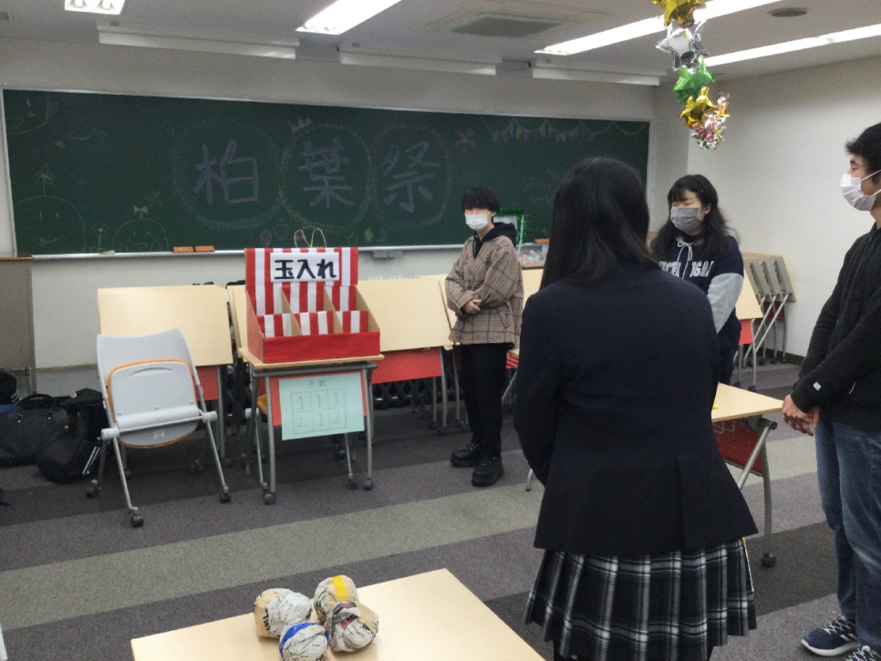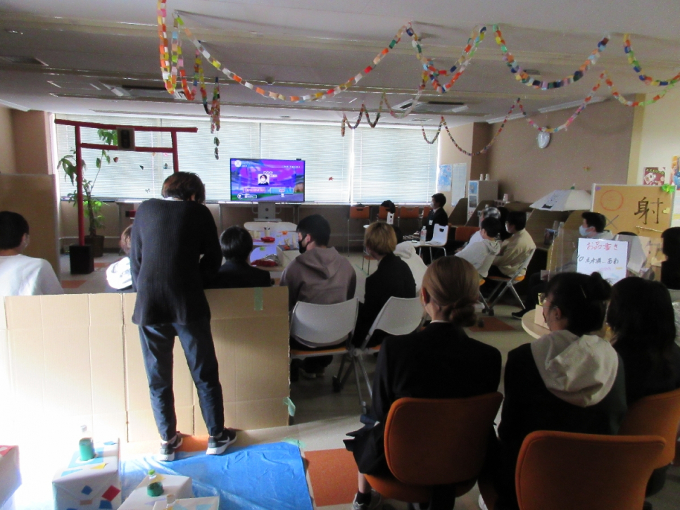 1年生は、射的と〇×クイズを組み合わせた「しゃてき〇×ゲーム」、輪投げの入った点数を競う「輪投げスコアアタック‼」おみくじや絵馬、鳥居のフォトスポットがある「第一神社(恋みくじ付き)」