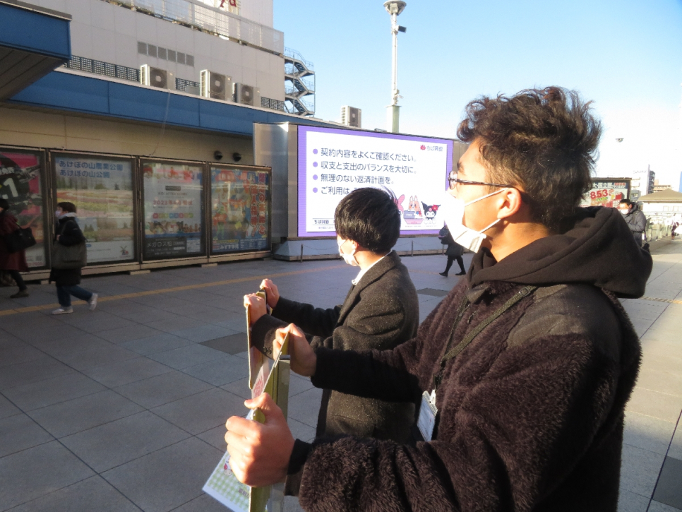 外での呼びかけボランティアでは緊張からか