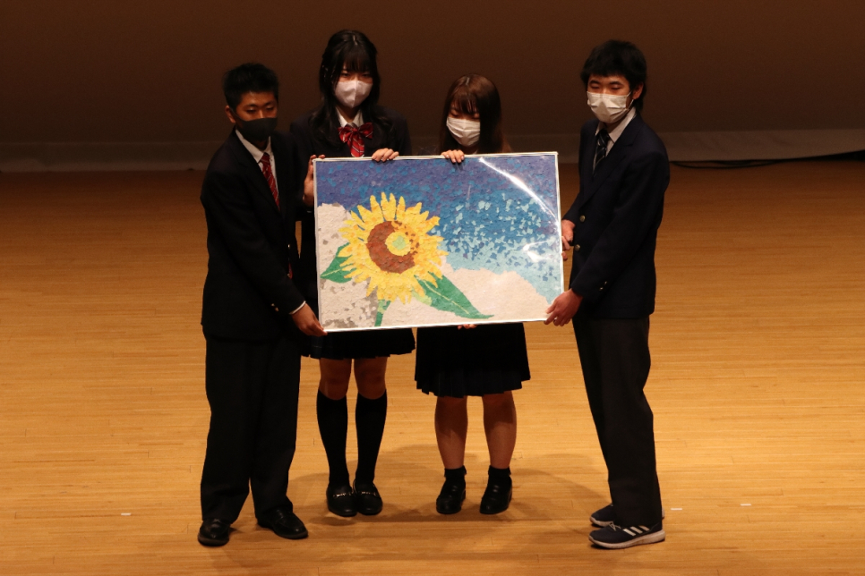 3年生が集まって制作してくれた作品は直接、在校生に贈呈されました。
