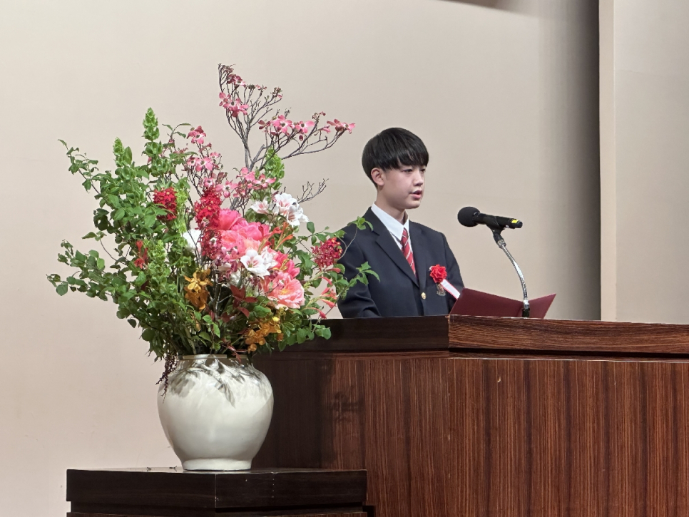 新入生を代表して決意を述べてくれました。