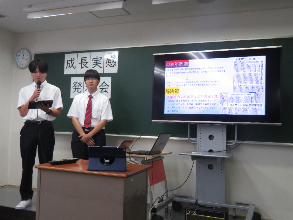 成長実感発表会当日は、各チームで探求した職業「アミューズメント業界・パイロット・教員・鉄道運転士・産業カウンセラー・介護福祉士」について発表しました!