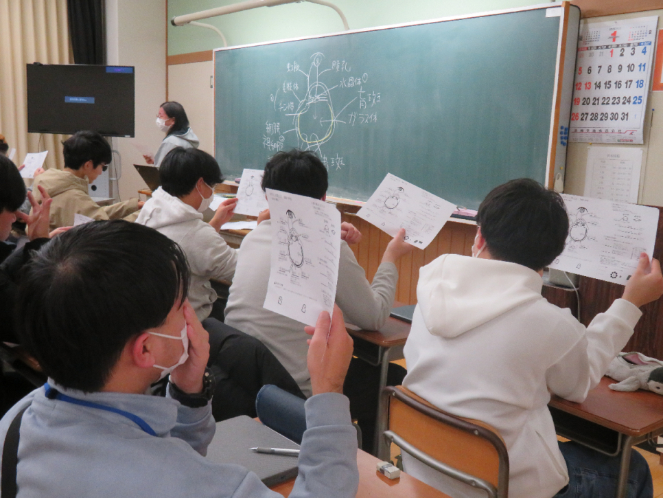 理科の授業では、「目」の構造、視覚の特徴について学びました!