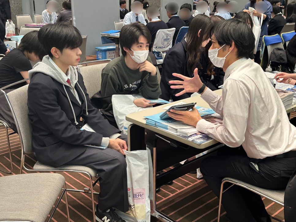 気になるブースを選んで熱心に話を聞く生徒たち。
