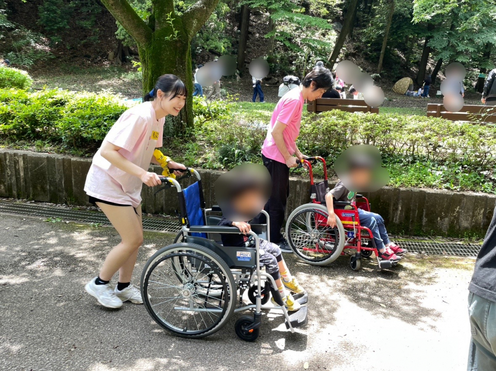 優しく話かけながら、ゆっくり車いすを押しました。