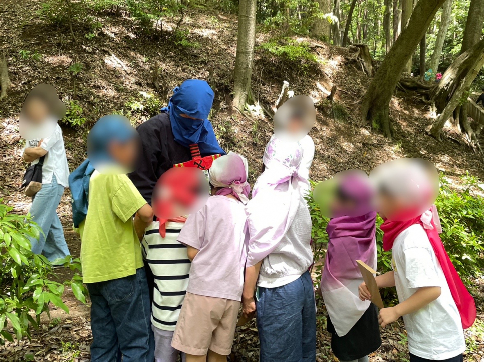 風呂敷をかぶって体験する「忍者修行」で大盛り上がり◎