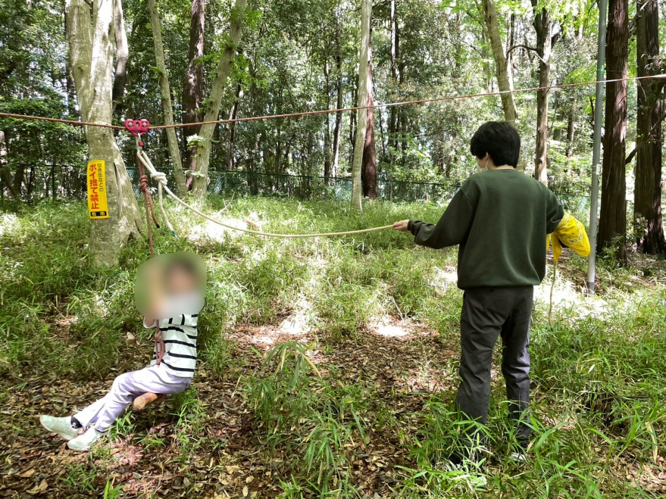 ロープ遊びや車いす体験、忍者修行など、子ども遊びをサポートする生徒たちも笑顔でいっぱいでした。