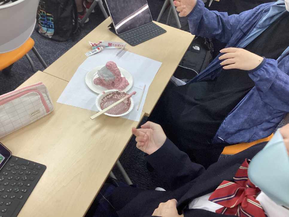 この日は火山の噴火の仕組みについて、石膏や粘土を使って学習しました。