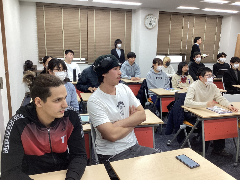 アメリカ、フランス、イタリア、メキシコなど各国から日本に留学している学生をお招きして、グループ形式でお話しました。