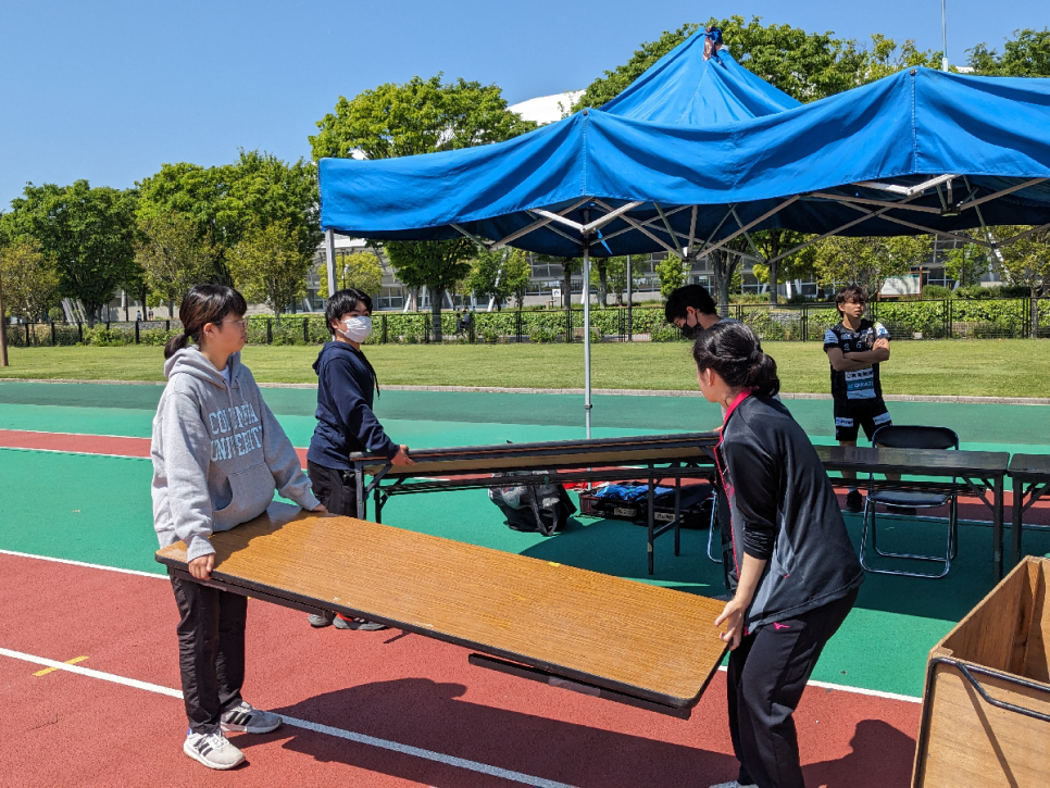 ゴール・テント・ベンチなどを出す作業