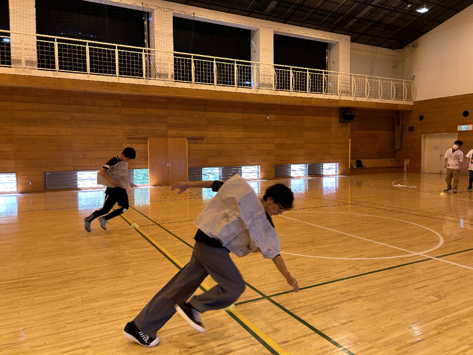 レクの内容はボール運びや新聞貼り付けリレー、ドッチボールなどです。