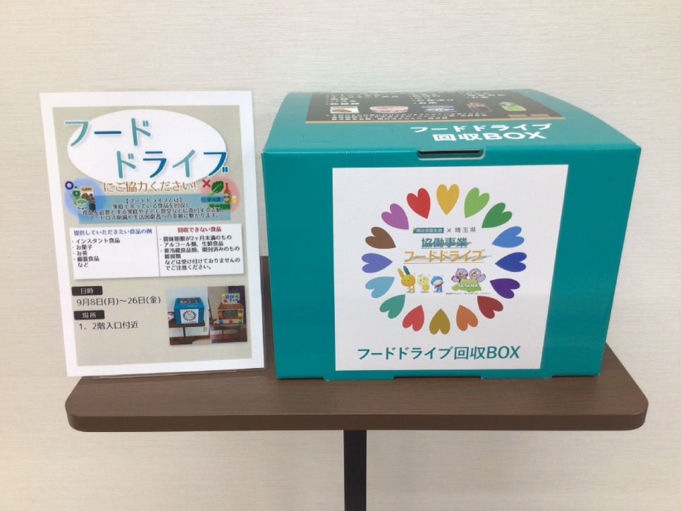 フードドライブとは、家庭で余った食品を職場等に持ち寄り、フードバンクなどに寄付する活動で、明治安田生命と協力して実施します。
