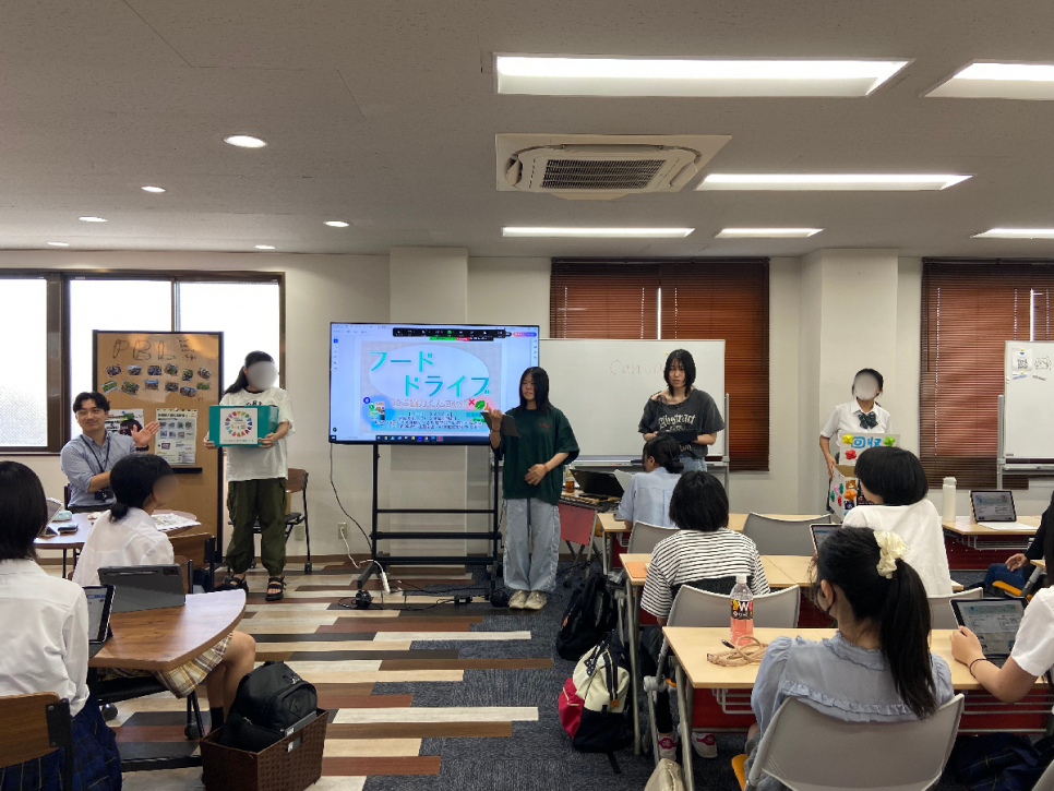 夏休み前の終業式で、フードドライブの宣伝を行いました。