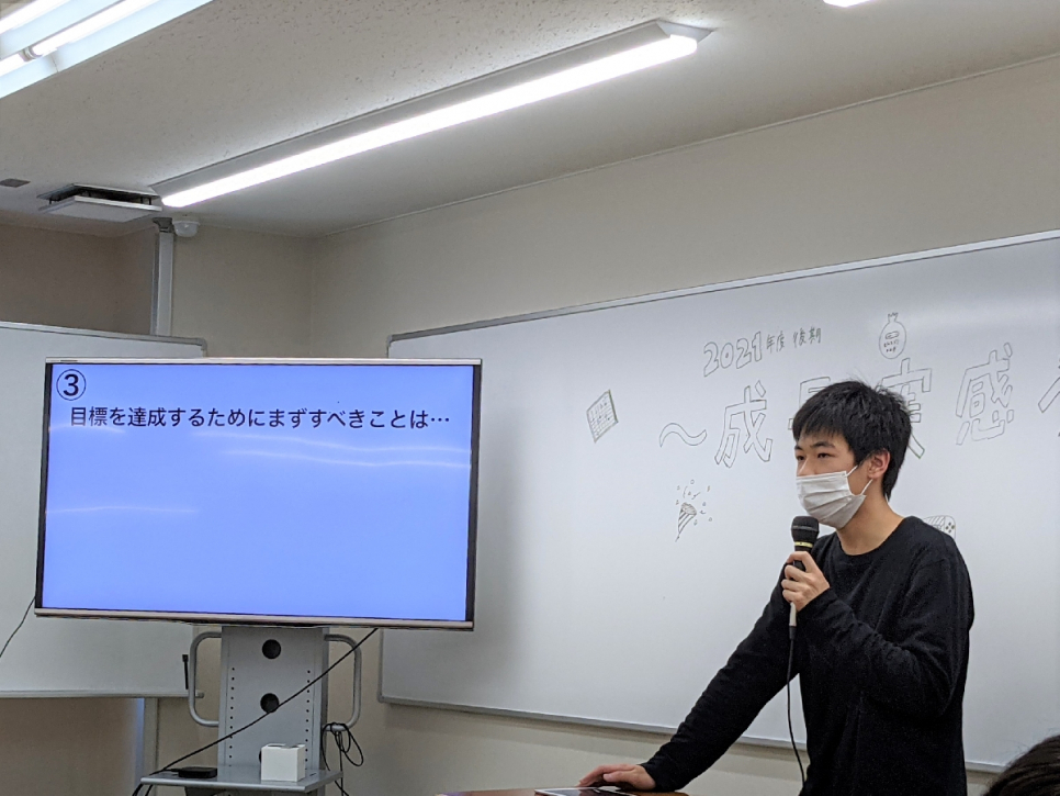2年生の発表。トップレベル大学を目指すための自律を考察し発表。