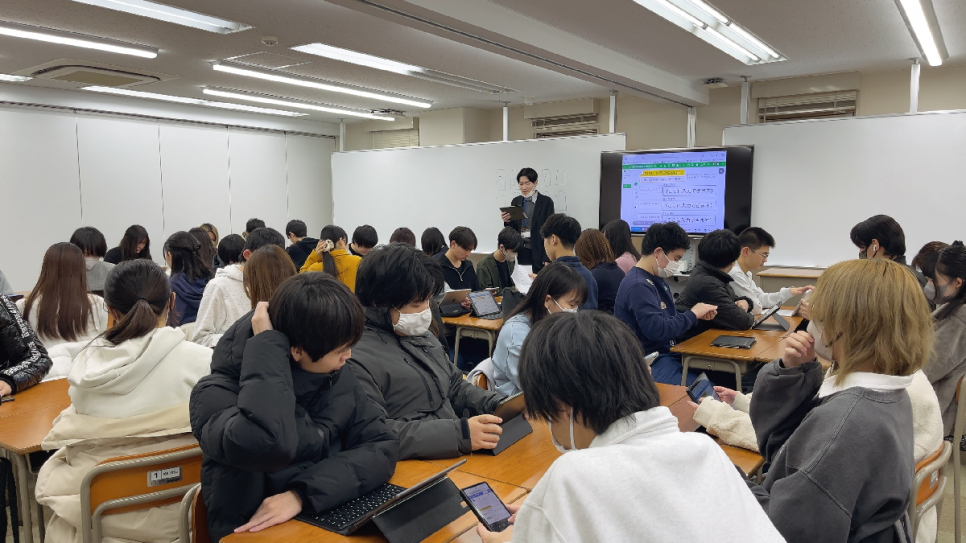 写真は発表中のものです^-^みんなで出し合った意見を発表して、イイネをより多く獲得したチームを決め合いました✨️