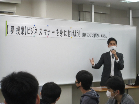 【よのなか授業】~本番!ビジネスマナーを身に付けよう!~株式会社ジンジブ鬼塚さん・岡本さんをお招きし、 「ビジネスマナーを身に付けよう!」講座を実施しました! まずは「ルール」と「マナ-」の違いから、 相手を思いやる様々なビジネスマナーを教えていただきました。 傾聴の仕方、名刺の渡し方など。 講座は、... -