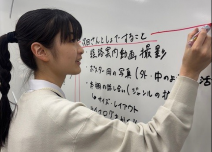 - さんとしょプロジェクトのミーティングに参加しました♪学年関係なく、いろんな意見を出し合って、目標に向かって活動しています!