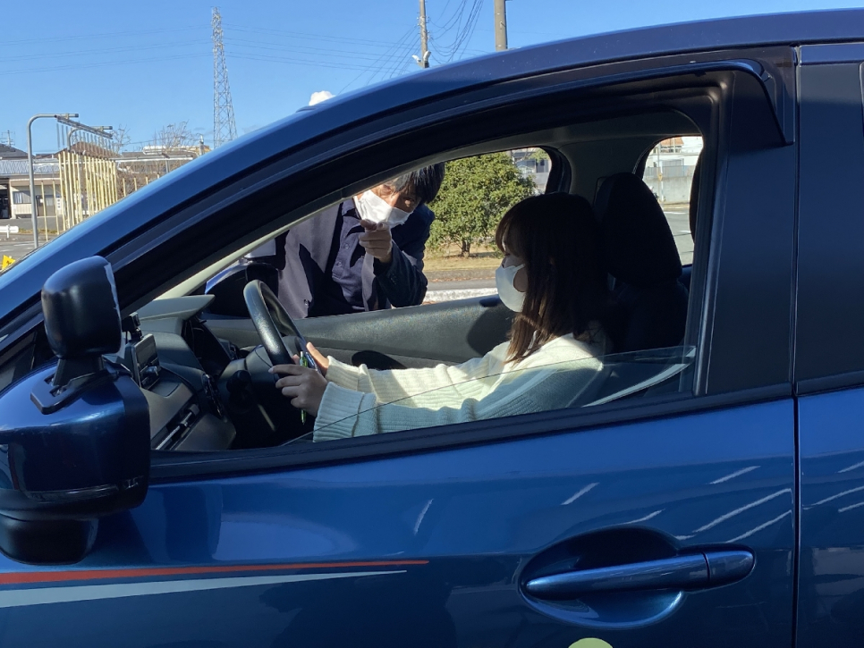 車の運転席に座り死角の確認をしたり、シートベルトを未着用時の衝撃などを体験してきました。