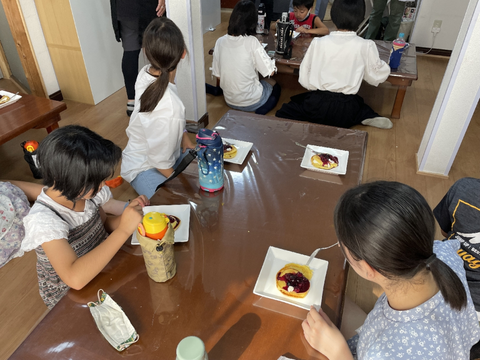 「おやつ作り」の一コマ。上手に返せるかな?