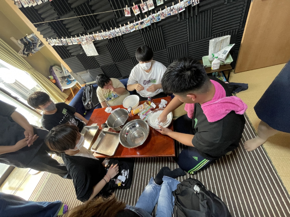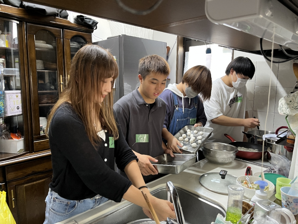 キッチンを借りてゆでる作業。みんなで楽しく作業しています。