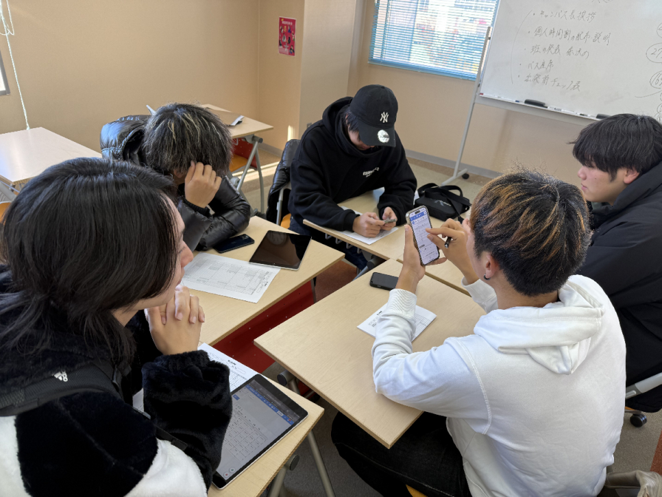 ガイダンスを行いました。この日は部屋割りなども決まり、部屋のメンバーで打ち合わせをしています。