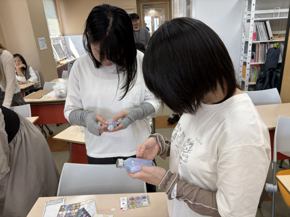 美術サークルでは、2週に分けて「ギャラクシーボトルづくり」にチャレンジしました!