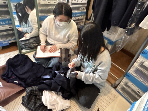 【ボランティア】制服リサイクル先日、制服リサイクルのボランティア活動を実施いたしました☆ 寄付された制服を仕分け・整理する作業をさせていただきました。 参加した生徒は、協力しながら、丁寧に作業を進めてくれていました~! 今後も、積極的にボランティア活動を行っていきます(^^) -