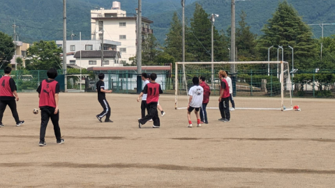 フットサルサークル②今日のフットサルサークルの2回目! 今回は外で行いました☆ 砂ぼこりなどもすごかったですが、暑さにも負けず頑張りました! -