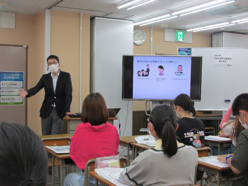 先日、東亜大学から教授にお越しいただき、心理学の特別授業が実施されました(^^♪