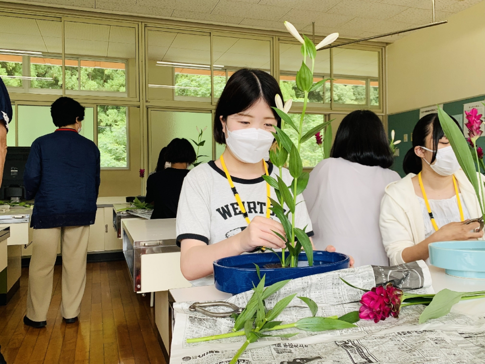 体験授業といって、絵画や裁縫、生け花や勾玉づくりなど、養父市の方から直接伝統の技を学ぶことができるものがあります。 内容は毎回異なりますが、どの体験も初心者でも取り組め、丁寧に教えてくれるので安心です♪