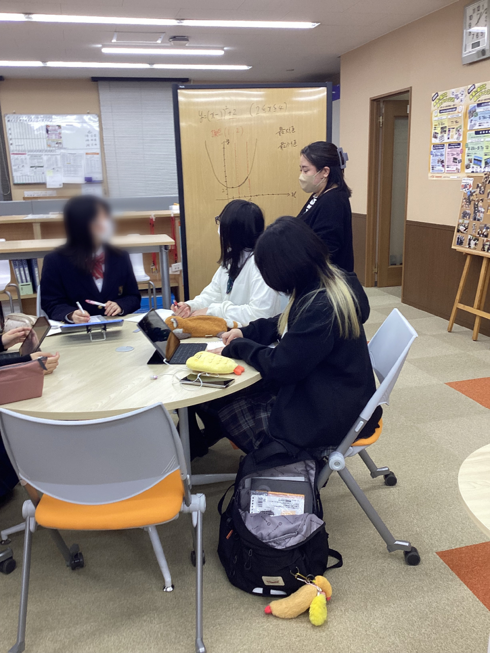 今日は友達と数学の勉強…と思ったら、なかなか難しい問題だったようです(;^ω^) 途中で先生の助けも借りながら、最後まで頑張りました! 勉強後の振り返りもしっかりやります。 「○○ができるようになった」「次は●●を頑張りたい」と、一日一日の気づきを大切にしています♪