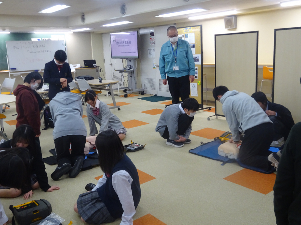 この日は郡山地方広域消防組合消防本部より講師の方を招き、話を聞くだけでなく人形を使った救急救命体験を行いました!