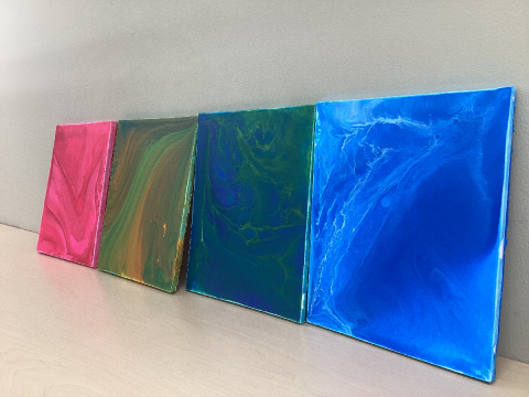 【第一学院★郡山★プロジェクト活動】~フルイドアート~こんにちは!郡山キャンパスではアートプロジェクトの活動でフルイドアートのワークショップ(アトプロワークショップ)を開催しました。 フルイドアートとは、絵具と洗濯のりを1:1の割合で混ぜたもの三色分作り、一つのカップに混ぜることなく合わせます。絵具の入... -