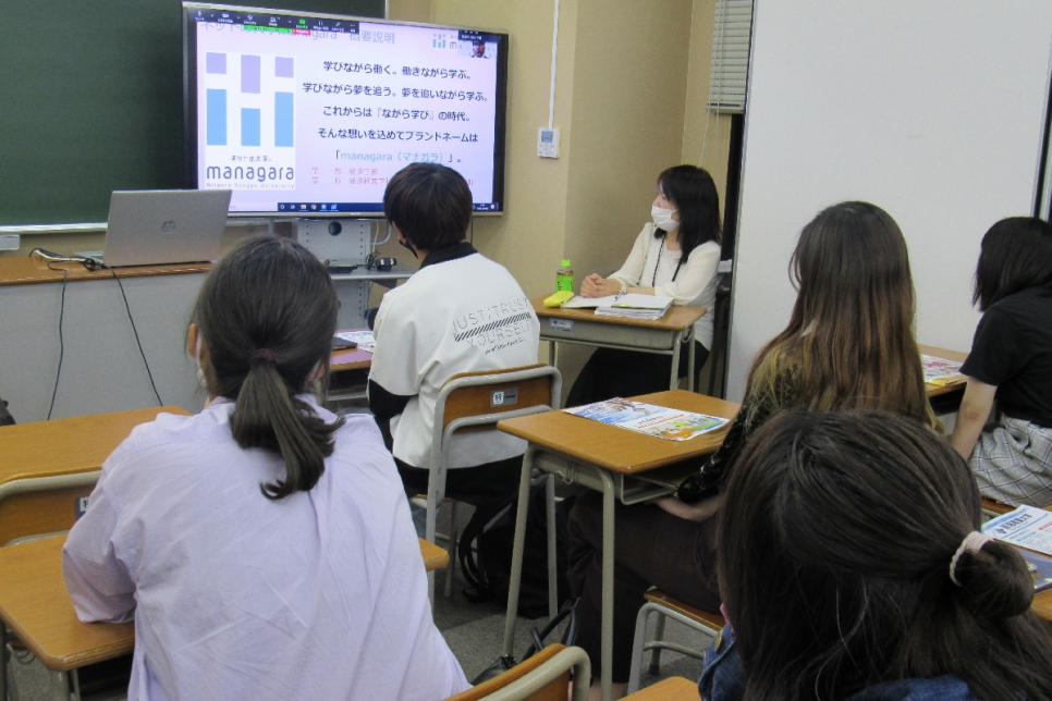 まず、1時間目に進学説明会が行われ、事前に収録された動画を見て、大学構内や講義室の広さに驚いていました。
