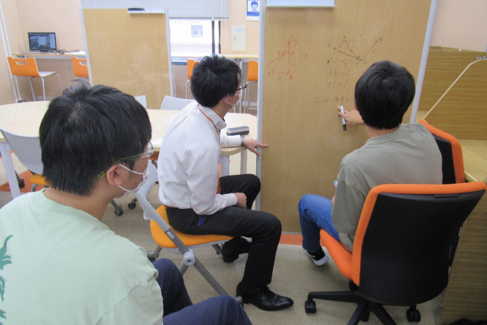 数学の問題がわからないな…と悩んでる生徒を見かけると、数学を得意とする生徒が声をかけ、アドバイスを行っていたり、