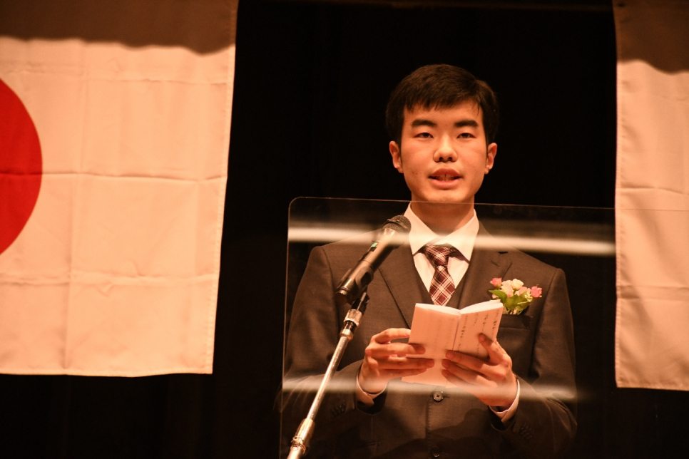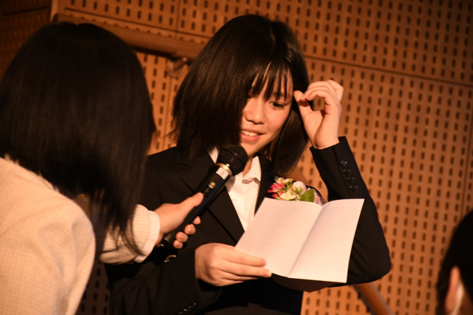 在校生送辞では後輩が先輩への憧れを語り、卒業生答辞では後輩に後を託すようなメッセージが込められていました。