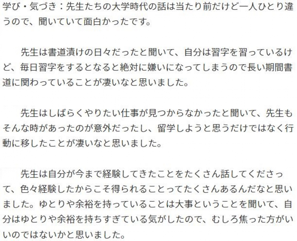 夢授業終了後の生徒のライフログには”先生も悩んでいたんだ。””先生も何をしていいか迷う時期もあったんだな”など感想がありました。