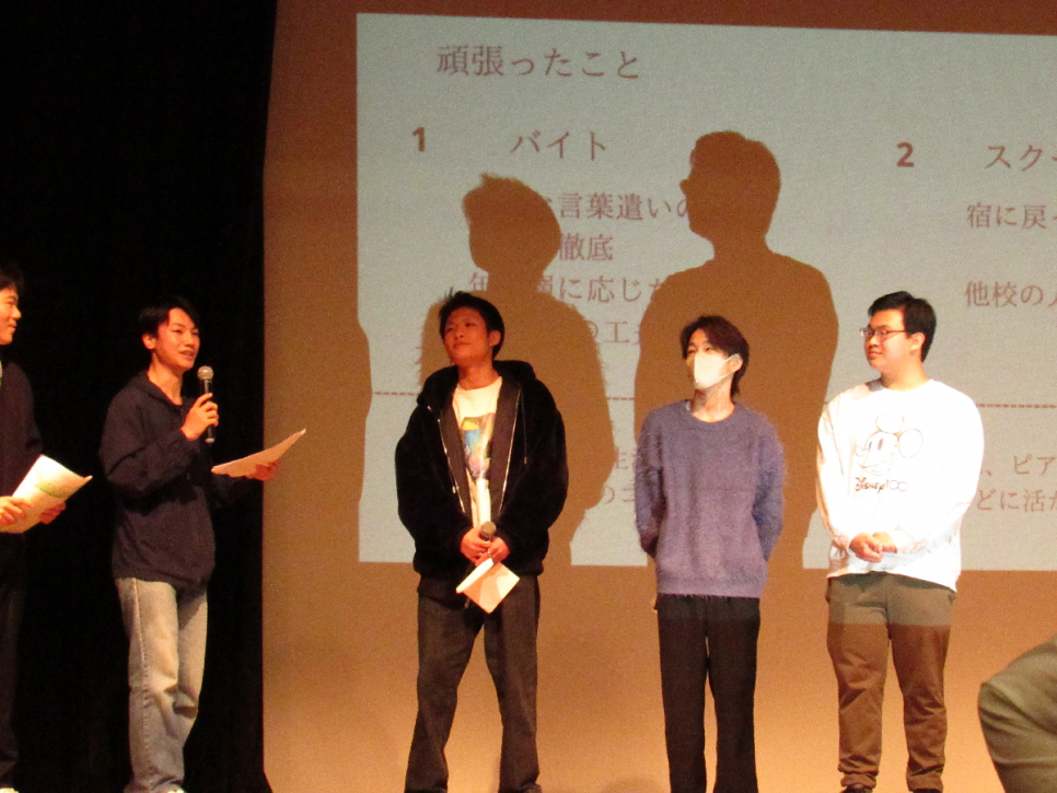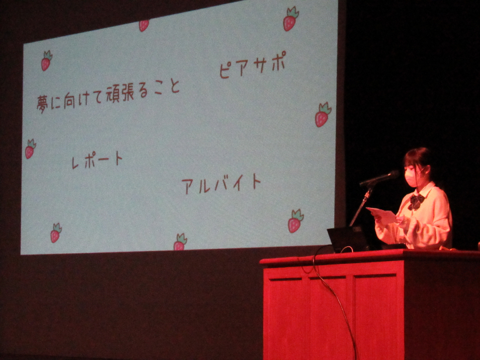今年度1年間かけて頑張ってきたことや自分の成長、将来の夢に関して発表を行いました。