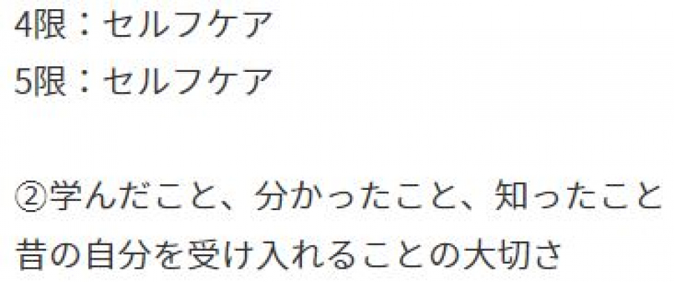第一学院には配信授業があり、各科目の授業だけではなく、自分の気落ちを整理するための『セルフケア講座』も行われています。