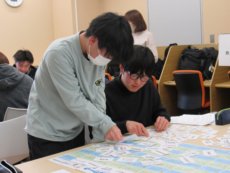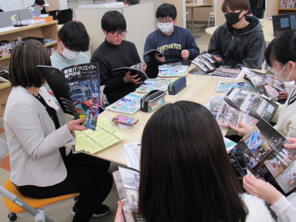 こんにちは!第一学院高等学校熊本キャンパスです♬ 先日、キャンパス内で進路ガイダンスを行いました。企業の方にお越しいただき、まずは職業理解のグループワークを行いました。職業内容が書かれた紙と職業を一致させるグループワークです。知らない職業もたくさんあり、予想しながらワークを行い、職業への理解を深めました!! 次に、県内外の大学や専門学校の説明を興味のある学校ごとにわかれ、話を聞きました。学校の説明を聞くのが初めての生徒もおり、パンフレットを見ながら話を聞き、知識や興味を広げていました。熊本キャンパスではキャンパス内外で進路学習を行い、進路決定を行っています。