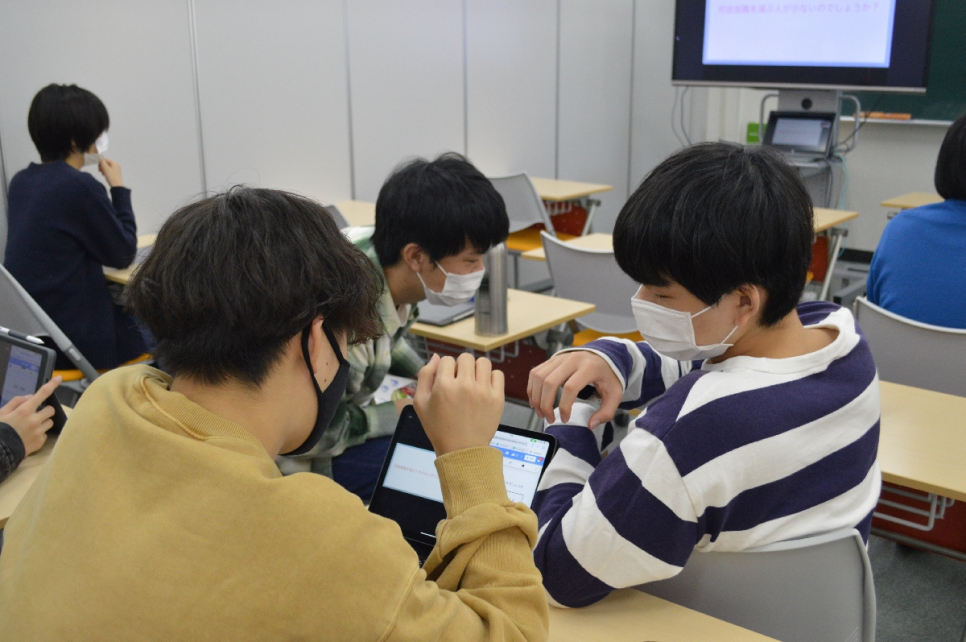 先輩からの質問に、みんなで相談し合っています!