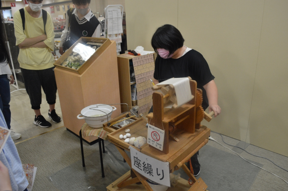 西陣織会館では座繰り体験!