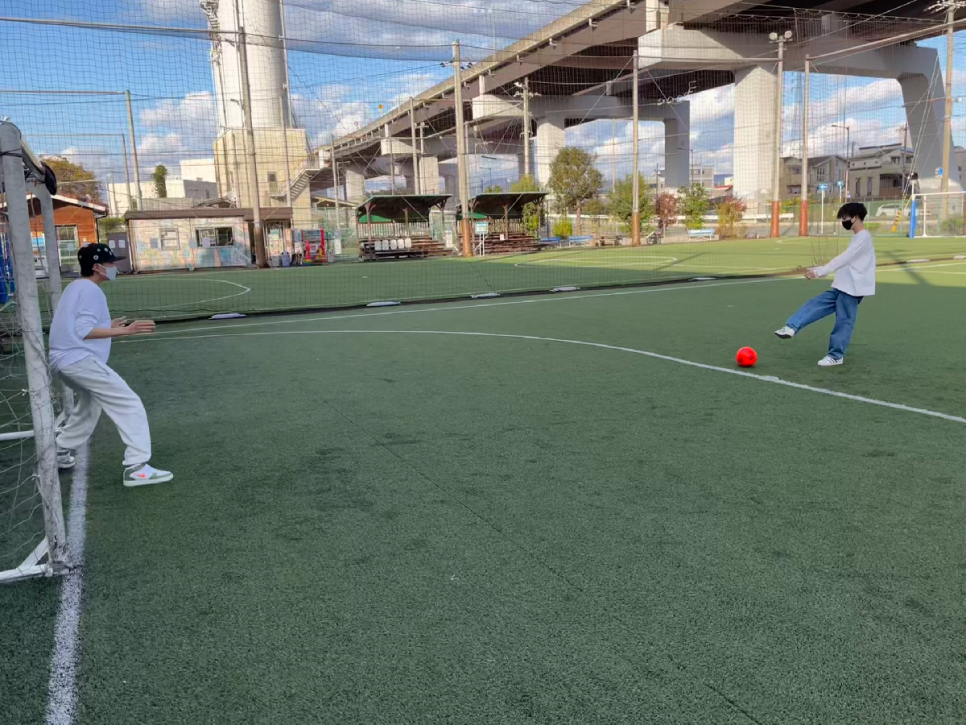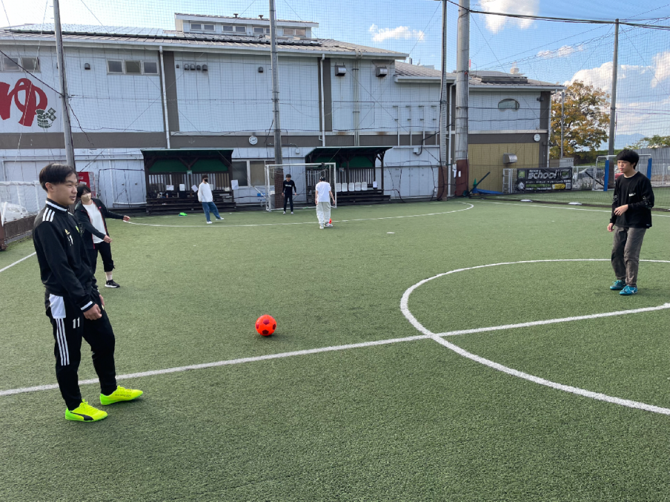 キャンパスの近くのフットサルコートで、ボールやゼッケンなどの貸し出しもあるので、