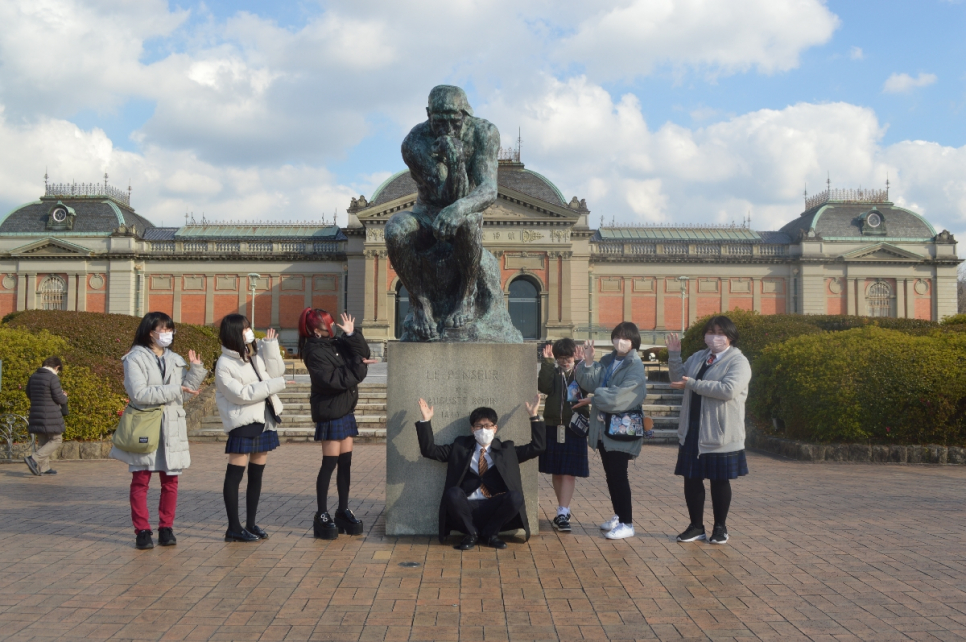 京博名物の「考える人」前にて!この後展示を堪能しました。