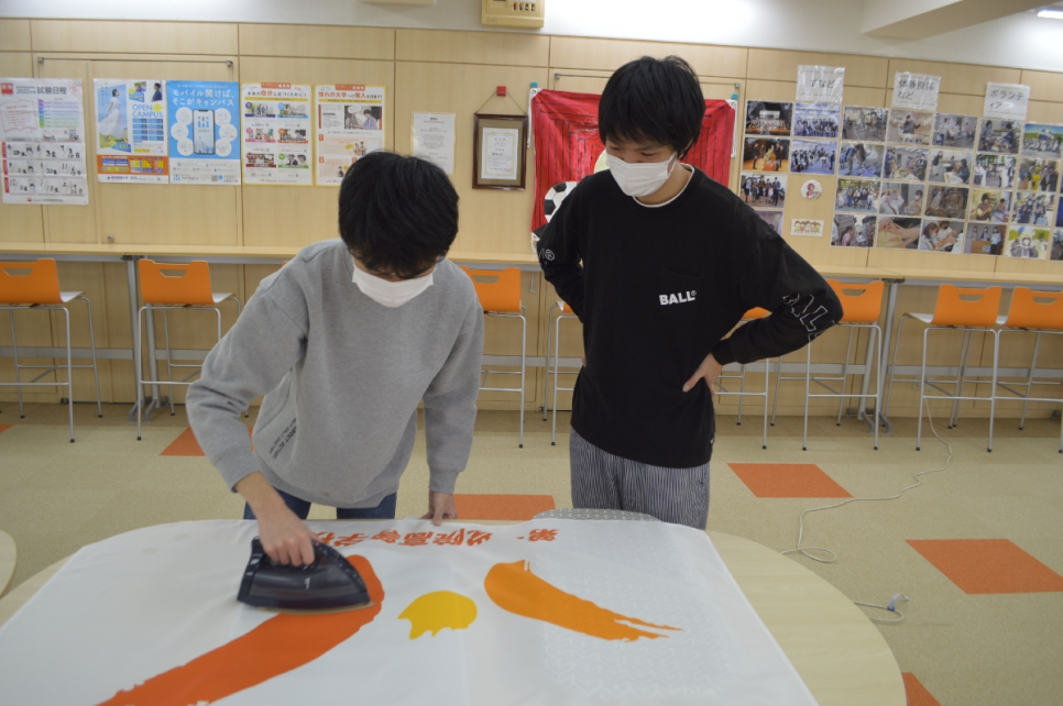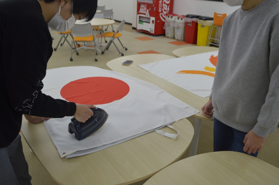 卒業式当日に掲げる国旗をアイロンがけ!