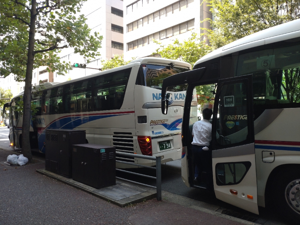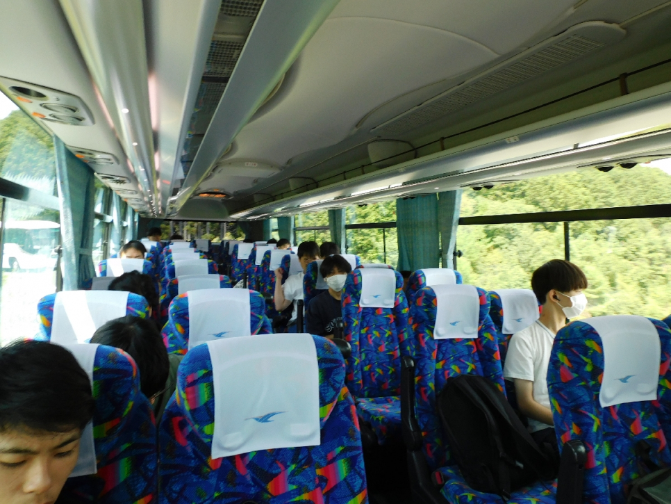 キャンパスから貸し切りバスで出発!