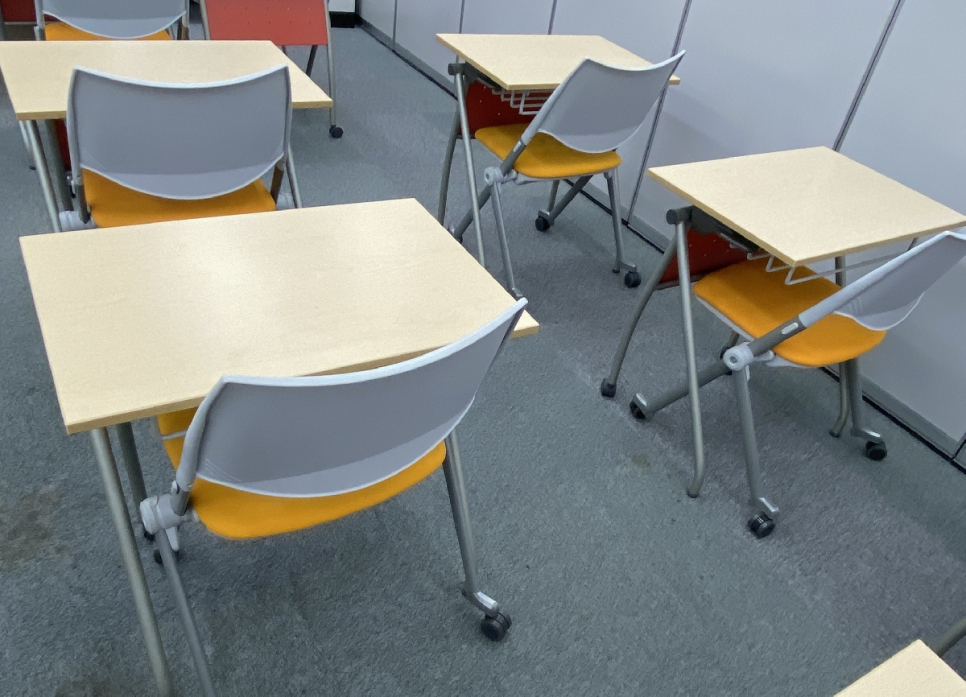 A, 机と椅子が一般的に使われている物とは違い、キャスターがついていたりクッション性だったりで使いやすく落ち着く。(Aさん)