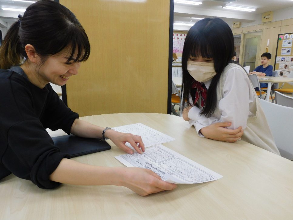 京都キャンパスでは、担当の先生と生徒が一人ずつ、二者面談を実施しています。