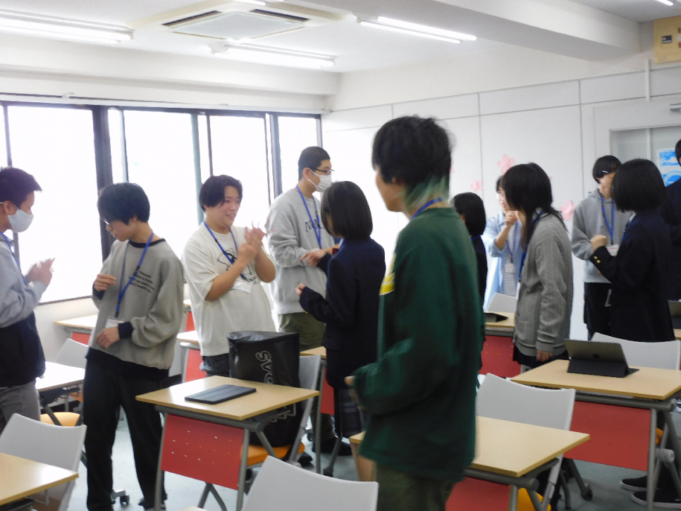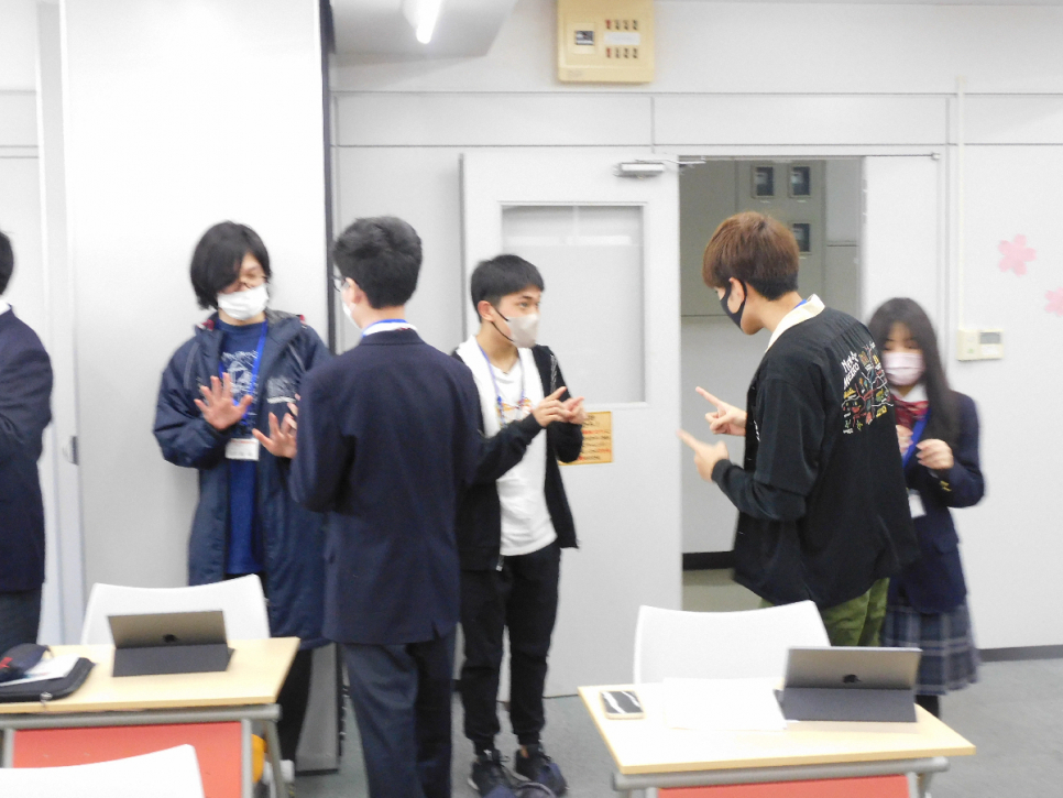 初めてのLHRでは、声を出さずに身振り手振りだけで誕生日順に並ぶ「バースデーライン」で緊張をほぐしました。